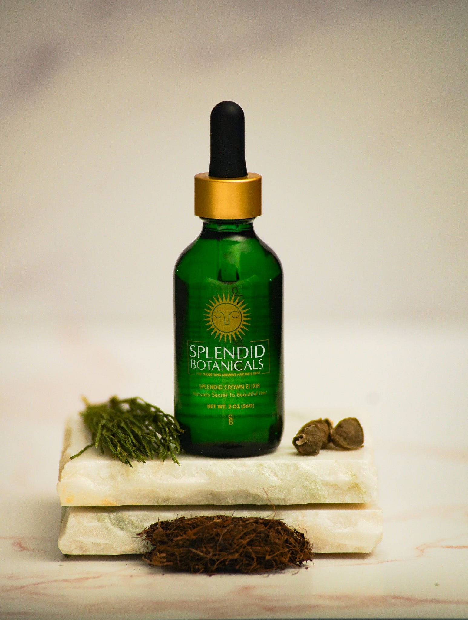 Splendid Crown Elixir is a concentrated botanical formulation composed to fortify the scalp, preserve length, and restore strength from root to crown. It is designed for those who approach hair care as discipline rather than trend—where nourishment, protection, and longevity are the measure of excellence.